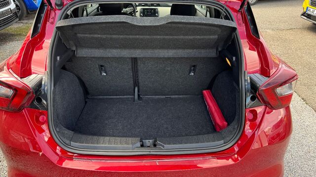 3. Bremsleuchte, 6 Lautsprecher, Airbag Beifahrerseite abschaltbar, Airbag Fahrer-/Beifahrerseite und Seitenairbag vorn, Ambiente-Beleuchtung, Around View Monitor (360 Umgebungsansicht), Audio-Paket, Audiobedienung am Lenkrad, Audiosystem: Radio mit CD-Player inkl. MP3-Wiedergabefunktion, Automatische Fahrlichtschaltung, AUX-IN-Anschluss (AUX-IN), Außenspiegel elektr. verstellbar, Außenspiegel Wagenfarbe, Außentemperaturanzeige, Bluetooth-Schnittstelle, Bordcomputer, Bose-Audiosystem, Bremsassistent (Nissan Brake-Assist), Comfort-Paket, Dachantenne, Dachspoiler, Design-Paket, Drehzahlmesser, Fahrassistenz-System: Autonomer Notbrems-Assistent, Fahrassistenz-System: Berganfahr-Assistent, Fahrassistenz-System: Fußgängererkennung, Fahrassistenz-System: Notbrems-Assistent, Fahrassistenz-System: Spurhalteassistent, Fahrassistenz-System: Verkehrszeichenerkennung, Frontscheibe Verbundglas, Gepäckraumabdeckung / Rollo, Geschwindigkeits-Begrenzeranlage, Getränkehalter hinten, Getränkehalter vorn, Gurtstraffer, Heckscheibe heizbar, Heckscheibenwischer, Innenspiegel mit Abblendautomatik, Isofix-Aufnahmen für Kindersitz, Karosserie: 5-türig, Klimaautomatik, Kopf-Airbag-System, Kopfstützen vorn und hinten verstellbar, Lenkrad (Sport/Leder), Lenksäule (Lenkrad) höhen-/längsverstellbar, Leseleuchte vorn, Leuchtweitenregelung automatisch, Motor 1, 0 Ltr. - 68 kW 12V KAT, Navigationssystem Nissan Connect, Nebelscheinwerfer, Reifen-Reparaturset, Reifendruck-Kontrollsystem, Rückfahrkamera, Rücksitzbank umklappbar, Schadstoffarm nach Abgasnorm Euro 6d, Schalt-/Wählhebelgriff Leder, Scheibenwischer mit Regensensor, Sitzheizung vorn, Sitz vorn links höhenverstellbar, Sitzbezug / Polsterung: Stoff, Sonnenblenden mit Spiegel, Start-Stop-Knopf, Start/Stop-Anlage, Steckdose (12V-Anschluß), Technik-Paket, Touchscreen-Farbdisplay (7, 0 Zoll) in Mittelkonsole, Türgriffe innen verchromt, Türverkleidung mit Stoffeinsatz, USB-Schnittstelle