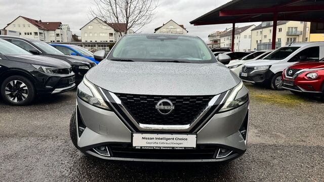 3. Bremsleuchte, Airbag Fahrer-/Beifahrerseite, Ambiente-Beleuchtung, Around View Monitor (360 Umgebungsansicht), Ausstattungs-Paket: Nissan Connect Navigationssystem mit Around View Monitor, Auto-Hold-Funktion, Automatische Fahrlichtschaltung, Außenspiegel elektr. anklappbar, Außenspiegel elektr. verstell- und heizbar, Blinkleuchten LED in Außenspiegel integriert, Dachantenne im Haifischflossen-Design, Dachhimmel hellgrau, Einparkhilfe vorn und hinten, Elektr. Bremskraftverteilung (EBD), Fahrassistenz-System: aktiver Spurhalteassistent, mit korrigierendem Bremseingriff, Fahrassistenz-System: Auffahrwarnsystem (Forward Collision Warning, FCW), Fahrassistenz-System: Autonomer Notbrems-Assistent, Fahrassistenz-System: Berganfahr-Assistent, Fahrassistenz-System: Fernlichtassistent, Fahrassistenz-System: Moving Object Detection (MOD, Fußgängererkennung und bewegliche Objekterkennung), Fahrassistenz-System: Müdigkeitserkennungs-Sensor, Fahrassistenz-System: Querverkehrs-Assistent Heck (Rear Cross Traffic Alert, RCTA), Fahrassistenz-System: Sicherheitssystem ERA GLONASS mit automatischem Notruf, Fahrassistenz-System: Totwinkel-Assistent, Fahrassistenz-System: Verkehrszeichenerkennung, Fahrmodusschalter, Fensterheber elektrisch vorn + hinten, Gepäck-/Laderaum-Unterteilung (Flexi-Board), Geschwindigkeits-Begrenzeranlage, Geschwindigkeits-Regelanlage (Tempomat) mit Abstandsregelung, Handschuhfach beleuchtet, Heckleuchten LED, Innenraumfilter: Pollenfilter, Innenspiegel mit Abblendautomatik, Instrumentenanzeige TFT-Farbdisplay (12, 3 Zoll), Isofix-Aufnahmen für Kindersitz, Karosserie: 5-türig, Klimaautomatik 2-Zonen, Kniepolster Mittelkonsole seitlich, Kofferraumbeleuchtung, Kopf-Airbag-System, Lastenverankerung / Verzurrösen, Lendenwirbelstütze Sitz vorn links, elektr. verstellbar, Lenksäule (Lenkrad) höhen-/längsverstellbar, Leseleuchten vorn und hinten, LM-Felgen, Mild-Hybrid 103 kW (Motor 1, 3 Ltr. - 103 kW DIG-T MHEV), Mittelarmlehne hinten mit Getränkehalter, Multimedia-System Nissan Connect, Navigationssystem, Nebelscheinwerfer LED, Nebelschlussleuchte LED, Notbrems-Warnblinkautomatik, Otto-Partikelfilter (OPF), Parkbremse elektrisch, Radstand 2666 mm, Reifendruck-Kontrollsystem, Rückfahrkamera, Rücksitz geteilt/klappbar, Schadstoffarm nach Abgasnorm Euro 6d, Schalt-/Wählhebelgriff Leder, Scheibenwischer mit Intervallschaltung, Seitenairbag, Seitenairbag vorn mitte (Center-Airbag), Service-System: Amazon Alexa, Sitz vorn links höhenverstellbar, Sitz vorn rechts höhenverstellbar, Sitzbezug / Polsterung: Stoff/Kunstleder, Sonnenblenden mit Spiegel (beleuchtet), Start/Stop-Anlage, Steckdose (12V-Anschluß) im Koffer-/Laderaum, Steckdose (12V-Anschluß) in Mittelkonsole, USB-Anschluss im Fond, USB-Schnittstelle, Verglasung hinten abgedunkelt