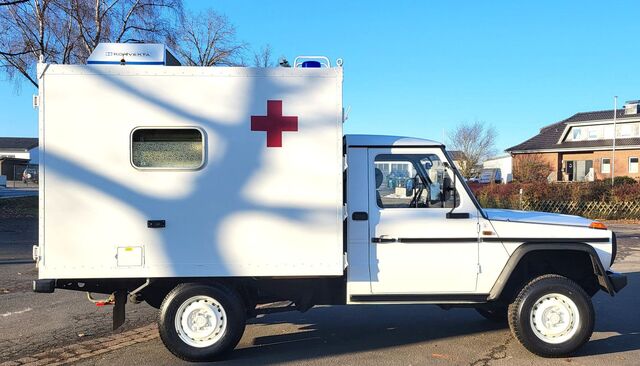 Einmalige Gelegenheit! 1 von 2.272 gebauten Fahrgestellen der Baureihe W461 !! Wir bieten hier einen seltenen 290GD Fahrgestell mit Krankenwagenkoffer an! Original nur 2.225 km gefahren! Das Fahrzeug kommt aus 1.Schweizer Hand. Ausgemustert als Reservekrankenwagen des Schweizer Militär. Diese Gelegenheit bekommt man nicht wieder. Oldtimer 1994mit H-Kennzeichen in allen Umweltzonen fahrbar! Günstige Oldtimer Versicherung und KFZ Steuer. Original Zustand. Wir haben diesen wunderschönen 290GD direkt aus der Schweiz importiert. Auf Wunsch wird eine Vollabnahme mit deutscher Zulassung durchgeführt. Service und Durchsicht werden gerade in unserer Werkstatt durchgeführt. Radstand 3.120 mm ! Ideal umzubauen als Fernreisemobil oder oder... Die Ausstattung als Krankenwagen ist original verbaut und wurde nicht verändert. Weitere Bilder folgen. Der solide 5-Zylinder OM602 Diesel ist einer der besten Motoren von Mercedes-Benz! Dieser Wagen wurde in der Schweiz als PUCH 290 GD ausgeliefert. Als PUCH Version sind nur 585 Fahrzeuge ausgeliefert worden. Sie erwerben hier ein absolut seltenes Fahrzeug im Bestzustand! Zuschaltbarer Allrad mit Geländeuntersetzung und 2 Differentialsperren! 5-Gang Schaltgetriebe! Solide und für die Ewigkeit gebaut!