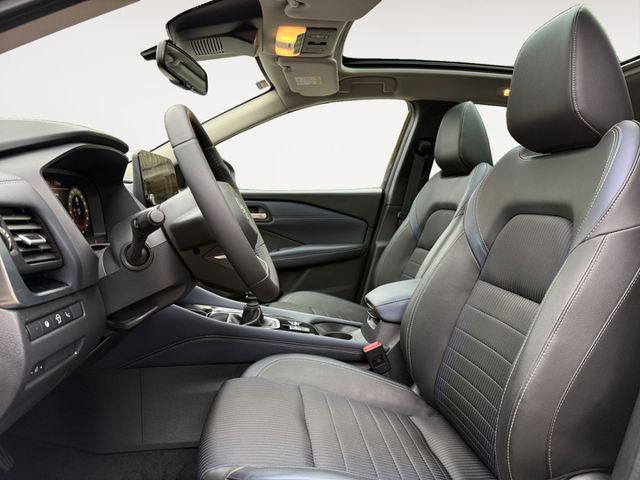 • Weiteres: Außenfarbe BLACK M/GRAY M, Innenraum blue black, Mehrausstattung, Zubehör, Reifendruck-Kontrollsystem, Schalt-/Wählhebelgriff Leder, Rückfahrkamera, Lenksäule (Lenkrad) höhen-/längsverstellbar, Mittelarmlehne hinten mit Getränkehalter, Scheibenwischer mit Regensensor, Heckleuchten LED, Ambiente-Beleuchtung, Frontscheibe heizbar, Panorama-Glasdach, LM-Felgen, Around View Monitor (360 Umgebungsansicht), Scheinwerfer Voll-LED, Schadstoffarm nach Abgasnorm Euro 6d, Fahrmodusschalter, Seitenairbag vorn mitte (Center-Airbag), Touchscreen-Farbdisplay (9 Zoll) in Mittelkonsole, Innenraumfilter: Pollenfilter, Lenkrad (Leder) mit Multifunktion, Schließ-/Startsystem intelligent key, Airbag Fahrer-/Beifahrerseite, Anti-Blockier-System (ABS), Tagfahrlicht LED, Start-Stop-Knopf, Außenspiegel elektr. verstell- und heizbar, Automatische Fahrlichtschaltung, Kopf-Airbag-System, USB-Schnittstelle, Rücksitz geteilt/klappbar, Seitenairbag, Service-System: Nissan Connect Services, 12V-Steckdose, 12V-Steckdose im Laderaum, 2-Farben-Lackierung, aktiver Spurhalteassistent, mit korrigierendem Bremseingriff, Antriebsart: Frontantrieb, Audiobedienung am Lenkrad, Audiosystem, Auffahrwarnsystem (Forward Collision Warning, FCW), Außenspiegel elektr. anklappbar, Ausstattungs-Paket: Nissan Connect Navigationssystem mit Around View Monitor, Auto-Hold-Funktion, Autonomer Lenk-Assistent für selbstständiges Spurhalten, Autonomer Notbrems-Assistent, Berg-Anfahr-Assistent, Blinkleuchten LED in Außenspiegel integriert, Dachantenne im Haifischflossen-Design, Dachhimmel hellgrau, Dachreling silber, Diebstahl-Warnanlage, Einparkhilfe vorn und hinten, Elektr. Bremskraftverteilung (EBD), Elektron. Stabilitäts-Programm, Fahrassistenz-Paket PRO, Fensterheber elektrisch vorn und hinten, Fernlichtassistent, Geschwindigkeits-Begrenzeranlage, Handschuhfach beleuchtet, Induktionsladeschale für Smartphone, Innenspiegel mit Abblendautomatik, Isofix-Aufnahmen für Kindersitz, Kamerasystem Around View, Keyless-Entry, Klimaautomatik 2-Zonen, Lastenverankerung / Verzurrösen, Lendenwirbelstütze elektr. verstellbar, Lenkrad heizbar, Leseleuchten vorn und hinten, Müdigkeitserkennungs-Sensor, Navigationssystem, Nebelscheinwerfer LED, Nebelsch