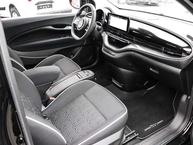 • Weiteres: Antriebs-Schlupfregelung (ASR), Sitzbezug / Polsterung: Stoff, Geschwindigkeits-Regelanlage (Tempomat), Lenkrad mit Multifunktion, Heckleuchten LED, Ambiente-Beleuchtung, Fahrmodusschalter, Infotainment-System: UConnect 5 mit Navigationssystem, DAB+ und Bluetooth-Freisprecheinrichtung (Touchscreen 10, 25), Armaturenbrett farbig, Elektromotor 87 kW (cont. 43 kW), Seitenschutzleisten schwarz glänzend, Außenspiegel elektr. verstell- und heizbar, beide, Mittelarmlehne vorn, Audiosystem: Premium - HiFi-Anlage von JBL, Airbag Fahrer-/Beifahrerseite, Tagfahrlicht LED, Lenksäule (Lenkrad) höhenverstellbar, Seitenairbag vorn, Kopf-Airbag-System vorn, USB-Schnittstelle, Elektron. Stabilitäts-Programm (ESP / ESC), Kopf-Airbag-System vorn und hinten, Notrufsystem (eCall), Sitzverstellung vorn rechts (4-fach), Rücksitz geteilt / klappbar, Fensterheber elektr. vorn mit Komfortschaltung, USB-Anschlüsse (Typ C und Typ A), Antriebsart: Frontantrieb, Audio-Navigationssystem, Aufmerksamkeits-Assistent, Außenspiegel Wagenfarbe, Autom. Begleitfunktion der Beleuchtung (Follow me home), Autonomer Notbrems-Assistent (AEB), Autonomes Fahren Level 2, Beifahrerairbag abschaltbar, Bremsassistent, Einschaltautomatik für Fahrlicht / Lichtsensor, Heckscheibe heizbar, Induktionsladeschale für Smartphone, Keyless-Entry & Go, Klimaautomatik, Komfort-Paket, Kopfstützen hinten, Mobile Online Dienste UConnect Live, One Pedal Drive (elektronisches Gaspedal), Parkbremse elektrisch, Radioempfang digital (DAB+), Regen-/Lichtsensor, Rückfahrkamera mit 360 Surround View, Rückfahrkamera Park View, Scheibenwischer beheizbar, Sitzheizung vorn, Sitzhöhenverstellung Fahrersitz, Smartphone Schnittstelle, Spurhalteassistent, Stauassistent, Tech-Paket, Totwinkel-Assistent, Verkehrszeichenerkennung, Wärmeschutzverglasung