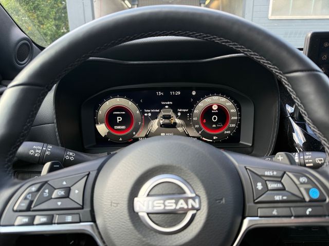 • Weiteres: Außenfarbe GUN METALLIC (M), Innenraum schwarz, Lackierung, Reifendruck-Kontrollsystem, Geschwindigkeits-Regelanlage (Tempomat), Mittelarmlehne vorn, Schalt-/Wählhebelgriff Leder, Rückfahrkamera, Scheibenwischer mit Regensensor, Scheinwerfer LED, Schließ-/Startsystem intelligent key, Reifen-Reparaturset, Ambiente-Beleuchtung, Dachspoiler, Einparkhilfe hinten, LM-Felgen, Around View Monitor (360 Umgebungsansicht), Schadstoffarm nach Abgasnorm Euro 6d, Fahrmodusschalter, Sportsitze vorn (Monoform-Design), Touchscreen-Farbdisplay (12, 3 Zoll), Innenraumfilter: Pollenfilter, Schadstoffarm nach Abgasnorm Euro 6e, Audiosystem: Radio, Außenspiegel mech. von innen verstellbar, Lenkrad (Leder) mit Multifunktion, Lenksäule (Lenkrad) höhenverstellbar, Start-Stop-Knopf, Airbag Fahrer-/Beifahrerseite und Seitenairbag vorn, Audio-/Bordcomputerbedienung am Lenkrad, Kopf-Airbag-System, USB-Schnittstelle, AUX-IN-Anschluss (AUX-IN), Rücksitz geteilt/klappbar, Gepäckraumabdeckung / Rollo, Anti-Blockier-System (ABS), Außenspiegel elektr. verstellbar, Aktive Fahrkomfortregelung (Fahrwerksdämpfung), aktiver Spurhalteassistent, mit korrigierendem Bremseingriff, Ambientebeleuchtung, Antriebsart: Frontantrieb, Außenspiegel elektr. anklappbar, Außentemperaturanzeige, Ausstattungs-Paket: Nissan Connect, Autonomer Notbrems-Assistent, Beifahrerairbag abschaltbar, Berg-Anfahr-Assistent, Blinkleuchte in Außenspiegel integriert, Bluetooth-Schnittstelle, Bremsassistent (Nissan Brake-Assist), Dachantenne im Haifischflossen-Design, Einparkhilfe vorn und hinten, Elektr. Bremskraftverteilung (EBD), Elektron. Stabilitäts-Programm, Fahrassistenz-Paket Pro, Fahrer-Informations-System (FIS) mit Farbdisplay, Farbdisplay (8 Zoll), Fensterheber elektrisch vorn und hinten, Fernlichtassistent, Fußgängererkennung, Geschwindigkeits-Begrenzeranlage, Infotainment mit Touchscreen, Innenspiegel mit Abblendautomatik, Isofix-Aufnahmen für Kindersitz, Kamerasystem Around View, Klimaautomatik, Kurvenbremskontrolle (Aktive Spurkontrolle), Lackierung Solid Red, Lenkrad heizbar, Leseleuchte, Motor 1, 0 Ltr. - 84 kW 12V KAT, Müdigkeitserkennungs-Sensor, Nebelscheinwerfer LED, Par