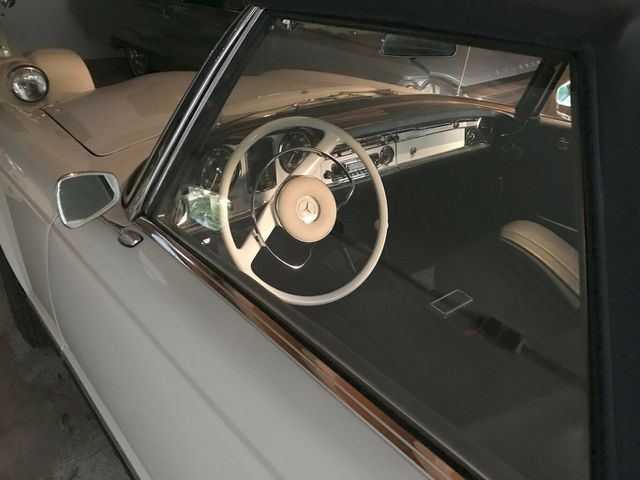 Ab hier folgen die spezifischen Informationen zu diesem Fahrzeug...Diese schöne Pagode wurde von ihrem Besitzer in einer mehrmonatigen Restauration neu aufgebaut und neu lackiert. Die Technik wurde teilweise im Rahmen dieser Restauration ebenfalls überarbeitet. Es handelt sich um ein europäisches Fahrzeug, welches über den Umweg USA und dem späteren Reimport in den 90er Jahren den Weg zurück nach Europa fand. Ausdrücklich handelt es sich aber hierbei um ursprünglich KEIN USA Modell!